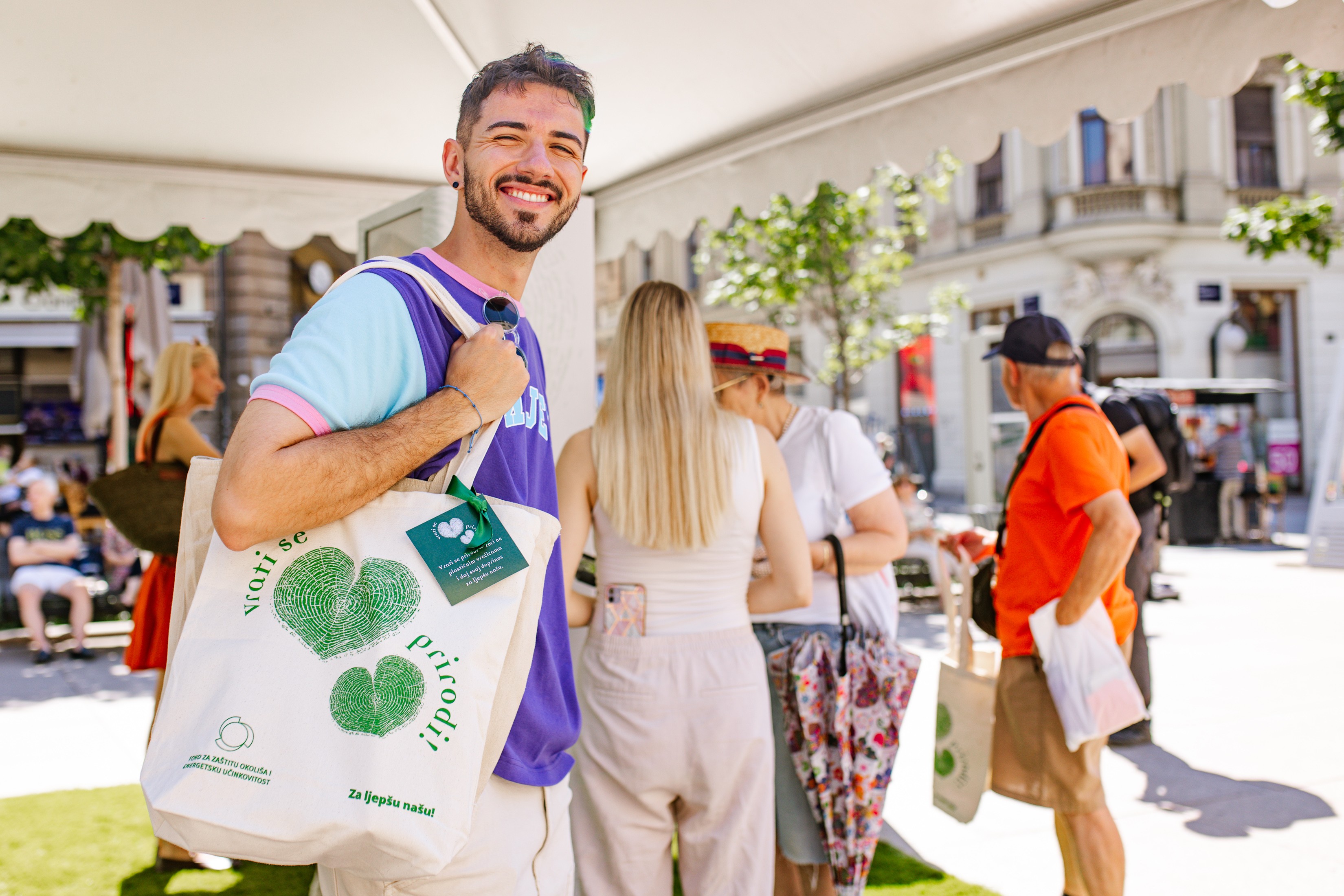 „Kampanjom ‘Vrati se prirodi!’ Fond za zaštitu okoliša želi podsjetiti koliko su male promjene u svakodnevnim navikama važne. Naime, svaki Hrvat godišnje iskoristi oko 97 laganih plastičnih vrećica. Pritom ih često koristimo kraće od pola sata, a one zatim desetljećima zagađuju prirodu. S ciljem smanjenja količine vrećica u opticaju, već od prije je uvedena zabrana laganih, a od 1. siječnja ove godine i naplata vrlo laganih vrećica. Današnjim događanjem želimo još jednom naglasiti da je vrećice potrebno koristiti štedljivo, zbog čega smo građanima kao alternativu osigurali platnene vrećice, koje traju godinama i nose poruku odgovornosti i brige za okoliš.” rekao je direktor Fonda Luka Balen povodom obilježavanja Dana bez plastičnih vrećica.