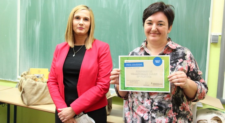 Prvu nagradu su učenici 4.c razreda osvojili projektom „Kad se male ruke slože“, u sklopu kojeg su zajednički na školskim radionicama odbačenim materijalima dali novi sjaj i novu namjenu i time pokazali mogućnosti koje nudi ponovna uporaba. Ravnateljica Poljoprivredno-prehrambene škole Marija Grgić je u svom pozdravnom govoru istaknula kako su u tijeku slične radionice u sklopu ovogodišnjeg Tjedna cjeloživotnog učenja te je izrazila zadovoljstvo što je prepoznat trud učenika, koji su svojim radom oplemenili i uljepšali prostor škole.